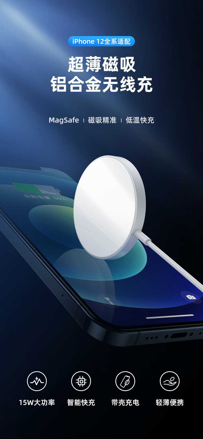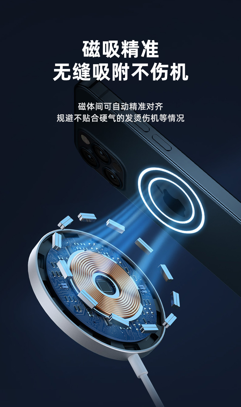 Apple磁気吸引ワヤン充電器充電はApple 12 Pro Max/11/XS/8サームスHUAWEIスホー充電台MagSafeを使用して、超薄型でコンパクトです。