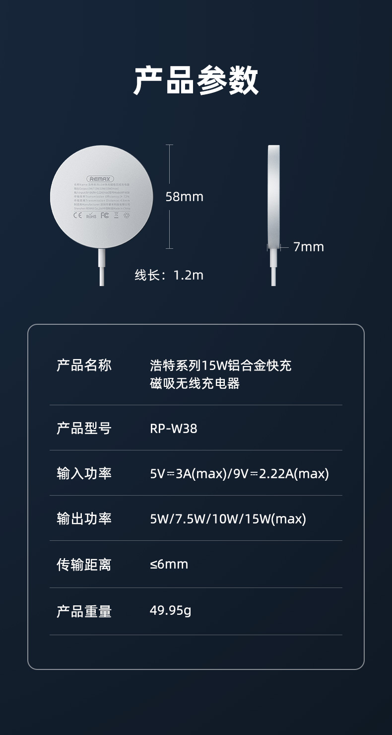 【remaxRP-W 38】REMAX叡量Apple wa Iya磁気吸引力15 W充電iPhone 12 ProMax/11/xmaホ【合金低温レベルアップ版】15 W磁気吸引ワイヤ充電器【相場】