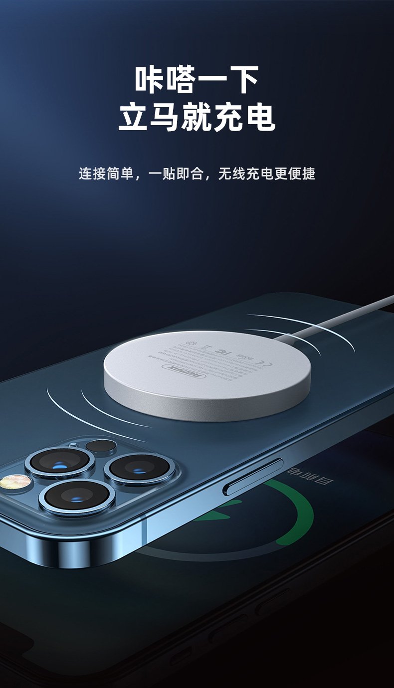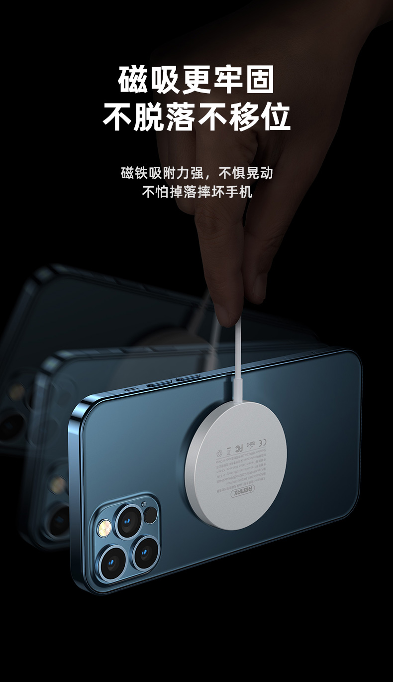REMAX叡量Apple wa res充電器MagSafe磁気吸引15 W充電iPhone 12 ProMax/11/x sumaホ【合金低温レベルアップ版】15 W磁気吸引ワイヤ充電器