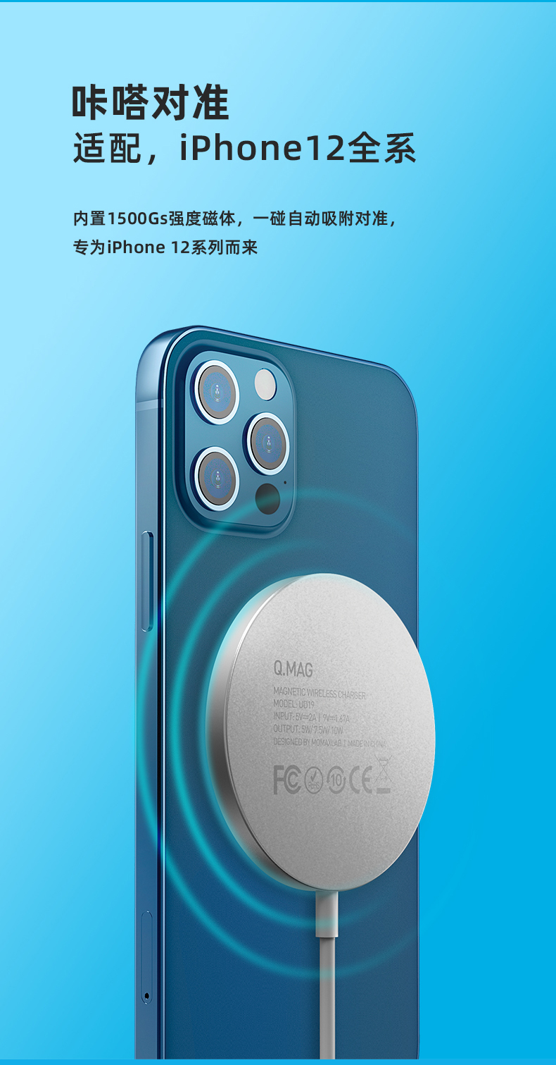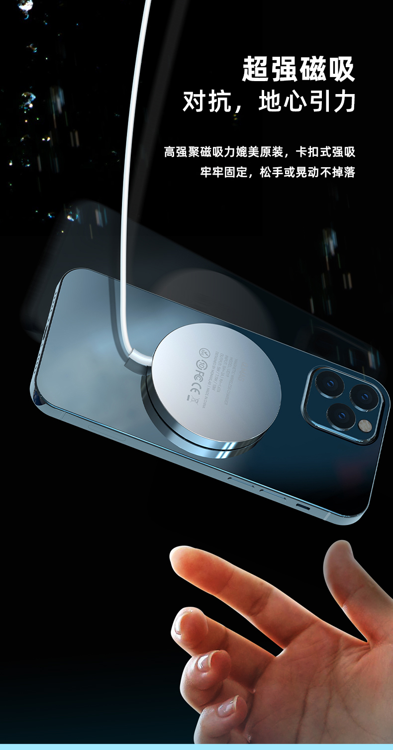 クールフロントアプリワイヤレ充电器MagSafe磁気吸引充电は、iPhone 12/12 ProMax/12 miniなどApple suma充电ホワイトに适用されます。