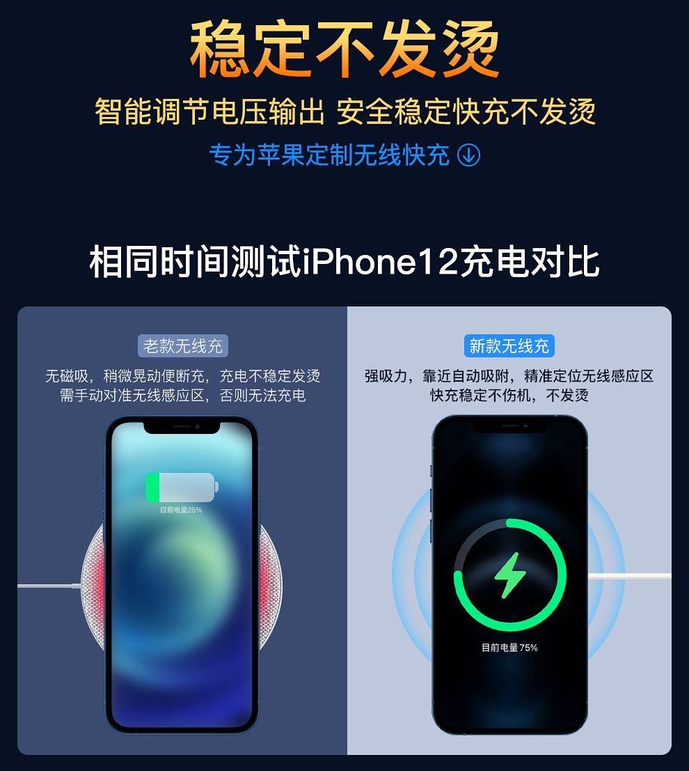 【公式サイト同種】Apple waya res充電器MagSafe磁気吸引15 W充電iPhone 12 ProMax 11 mini【磁気吸引強化-低温アップグレード版】15 W磁気吸引ワヤン充電器Apple 12/11/XsMax/8 Plus sumaホ対応