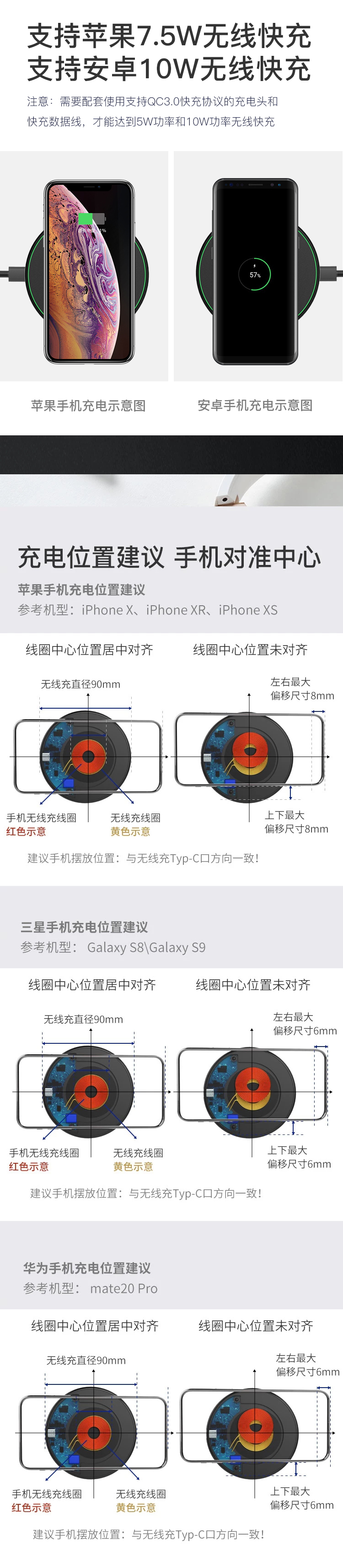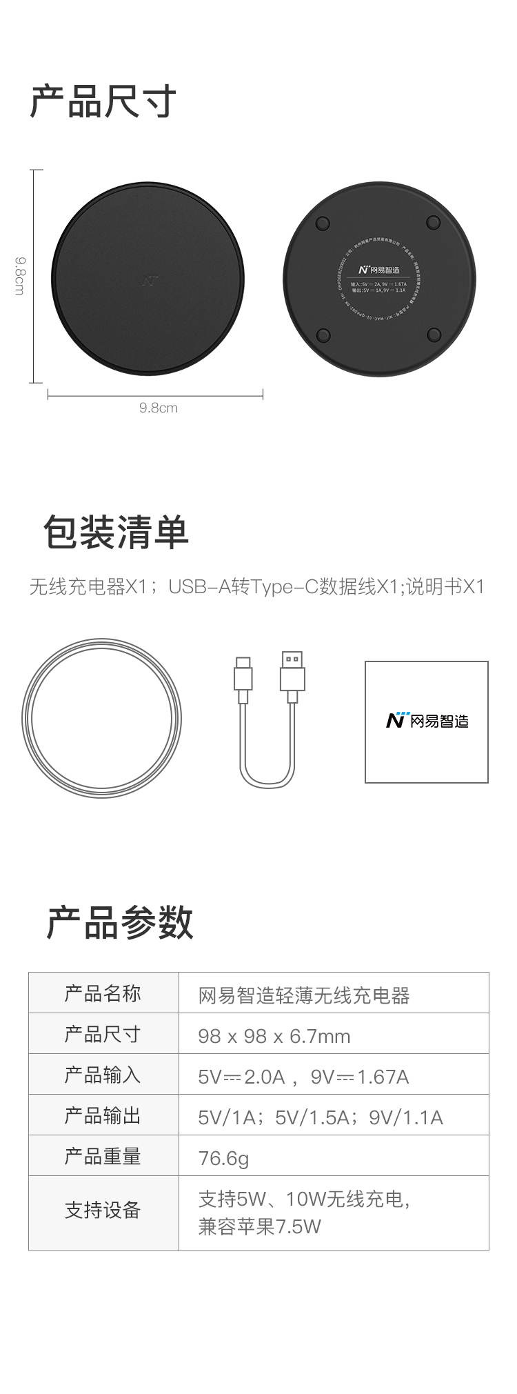 網易厳選網易知造軽薄ワヤン充電器Apple Android Sma充電iPhone 11 ProMax/X/XR/MI9サムス10 HUAWEIp 30 pro