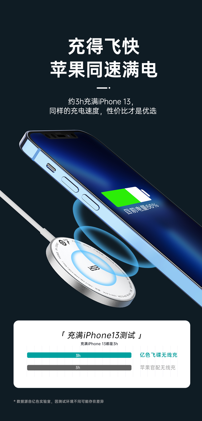 億色のアプリワイヤライツ充電器MagSafe磁気吸引15 W充電iPhone 13/12 ProMax/mini【20 WPDヘッドを送る】HUAWEI Androidスホ無限充電台をサポートします。