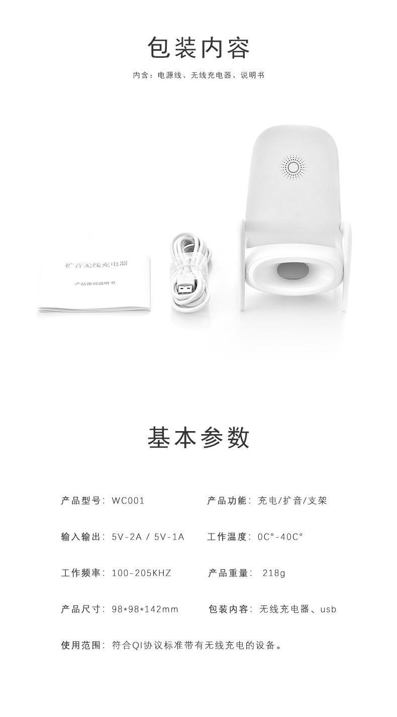 IRONGEERド椅子拡声支柱ワイヤレス充電器は、Apple HUAWEI Android sumn Sma急速充電ホワイトに適用されます。