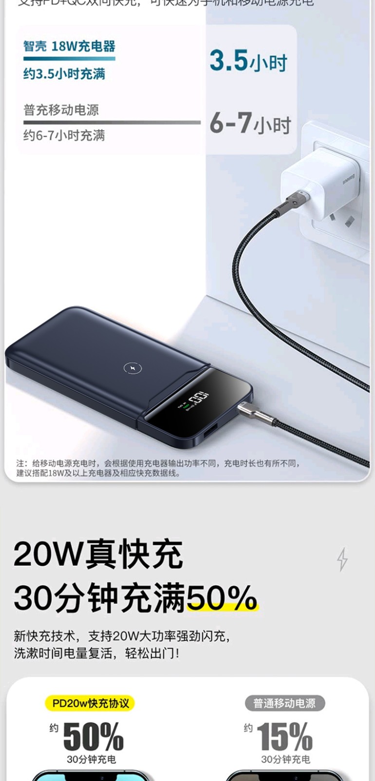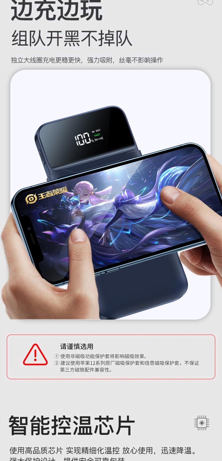 磁気吸引充电宝,电量显示,双向充電