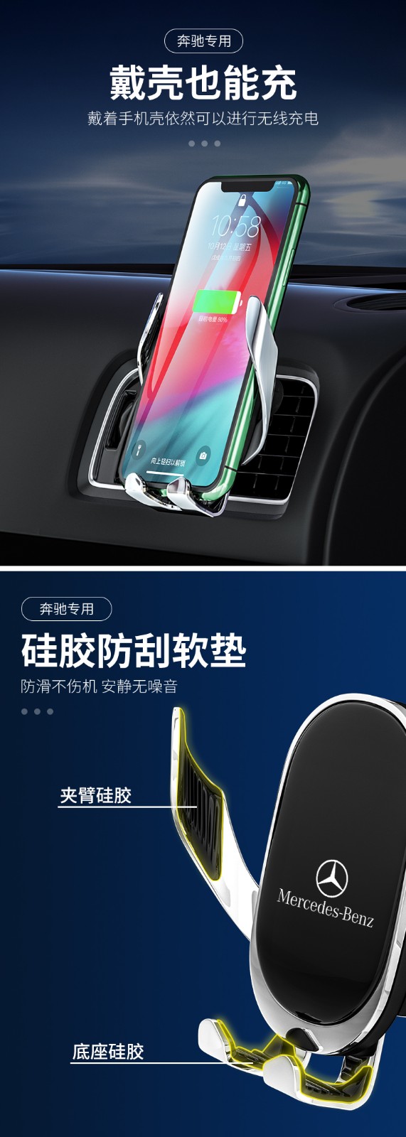 プリバード(PULEEBUMG)車載スホー支柱ワイヤレス充電器インテリジェント対応車用エアアウトレービデオゲームベンツ車支柱月光銀(撮影後、具体的な車種を備考して専属カードホルダーを手配します)【写真価格ブランドのオファー】-