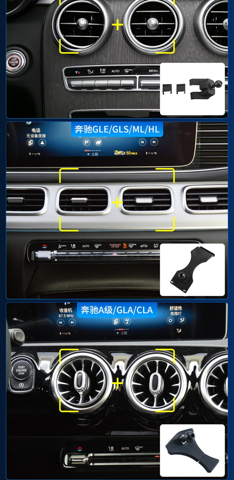 プリバン(PULEEBUMG)車載スマホー支柱ワイヤレス充電器インテリジェント対応車用エアアウドレカート用のシプロベンツの支柱月光銀(撮影後、具体的な車種を備考して専属のカードホルダーを手配します)