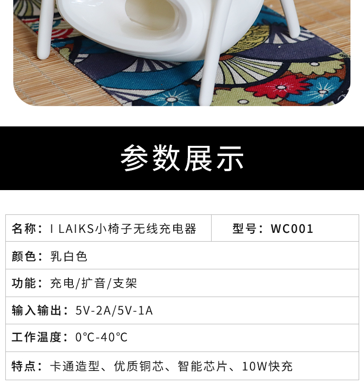 ilaiksワイヤレス拡音充電器スマホ支柱多機能シート汎用怠け者家庭用テレビ台座【白-10 W】ワイヤレス拡音充電器新