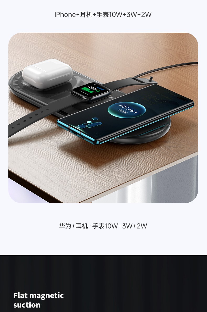タイプスマホ無線充電、イヤホン無線充電、腕時計無線充電、三合一