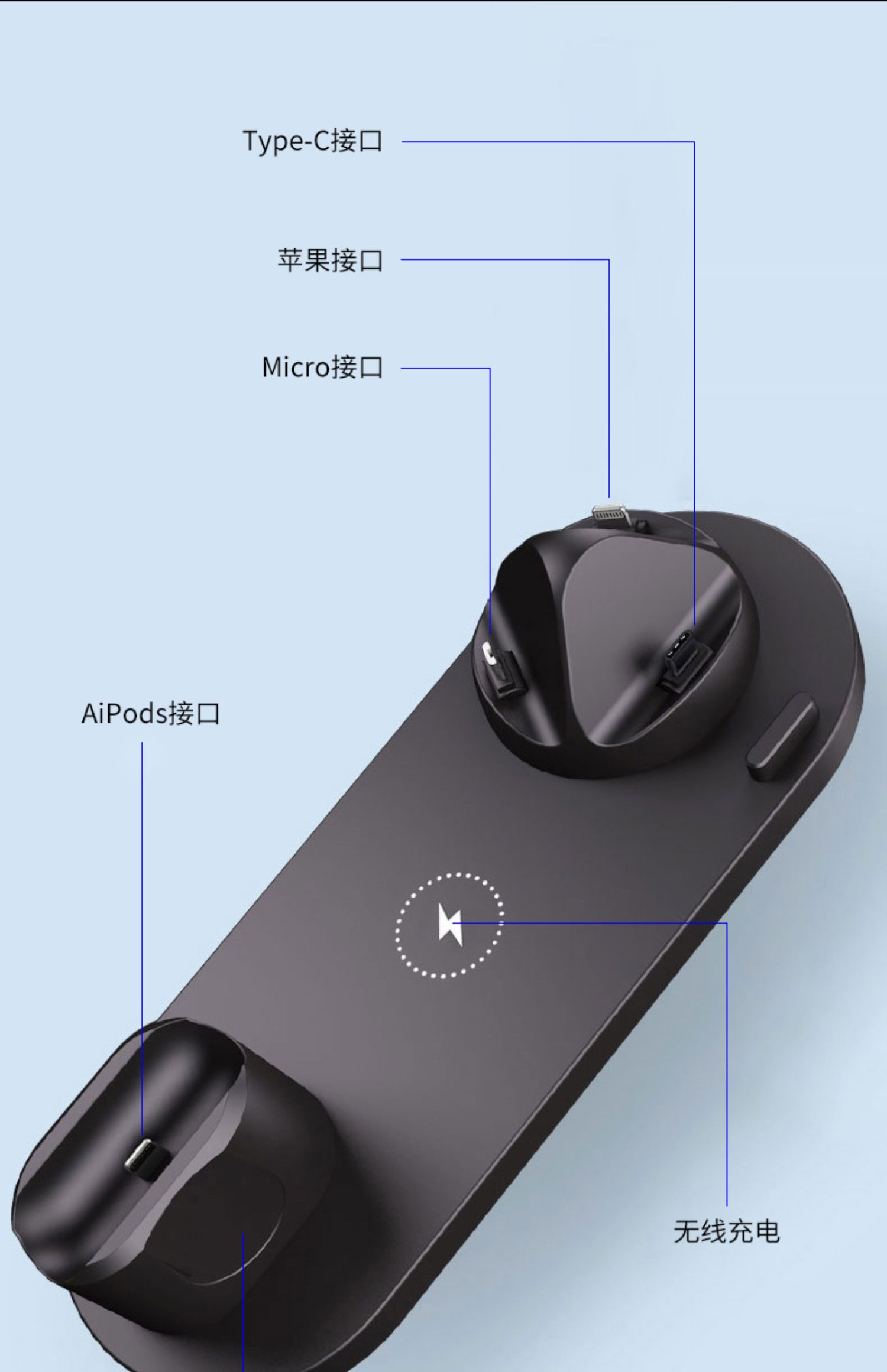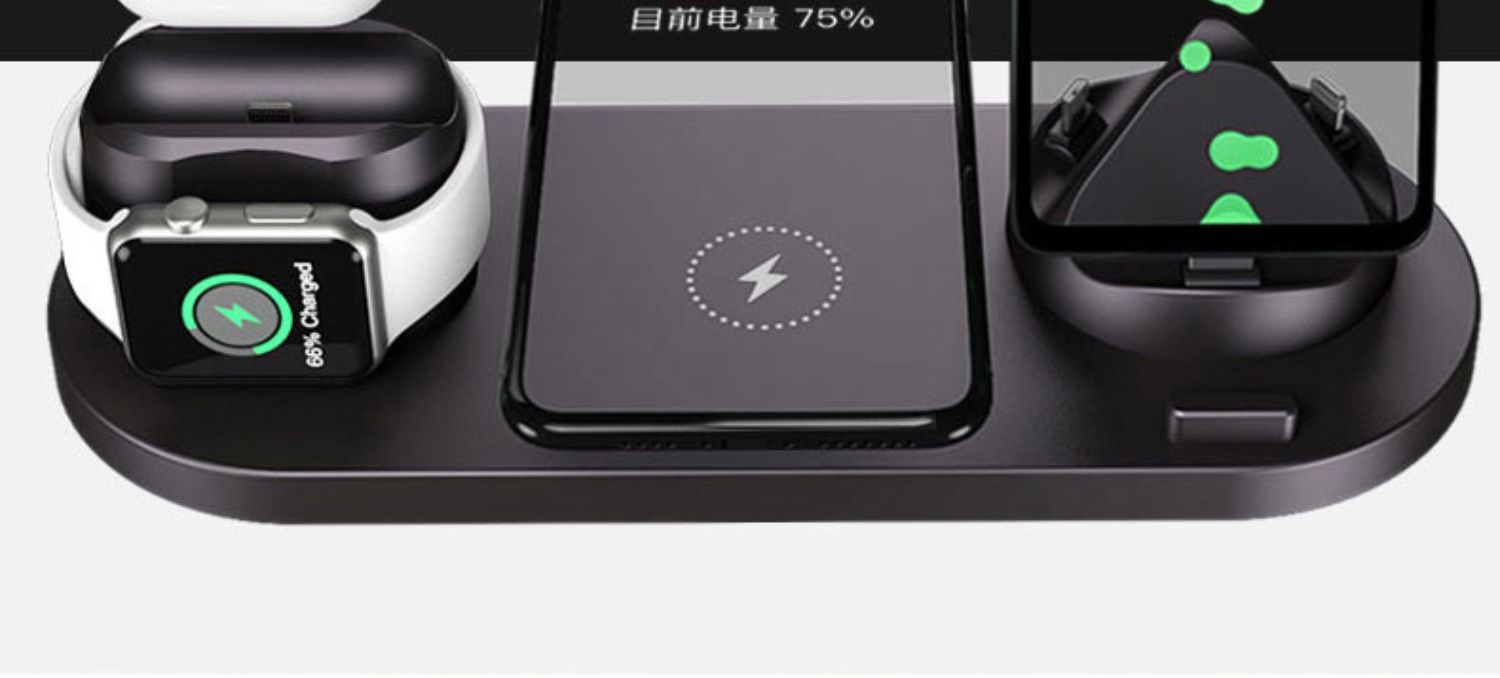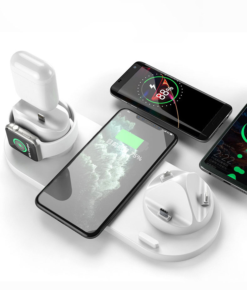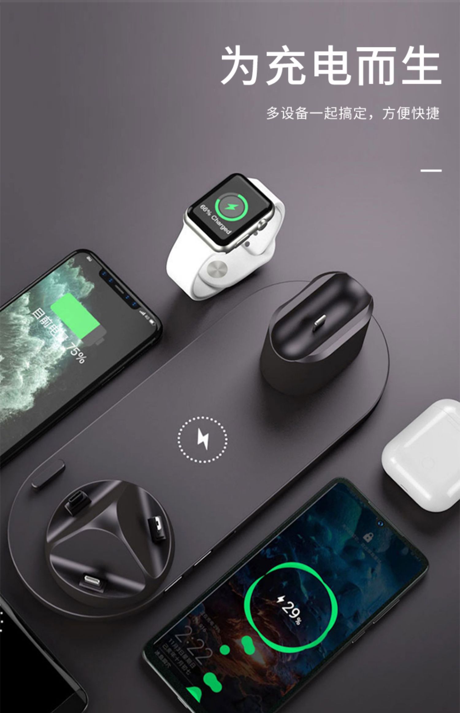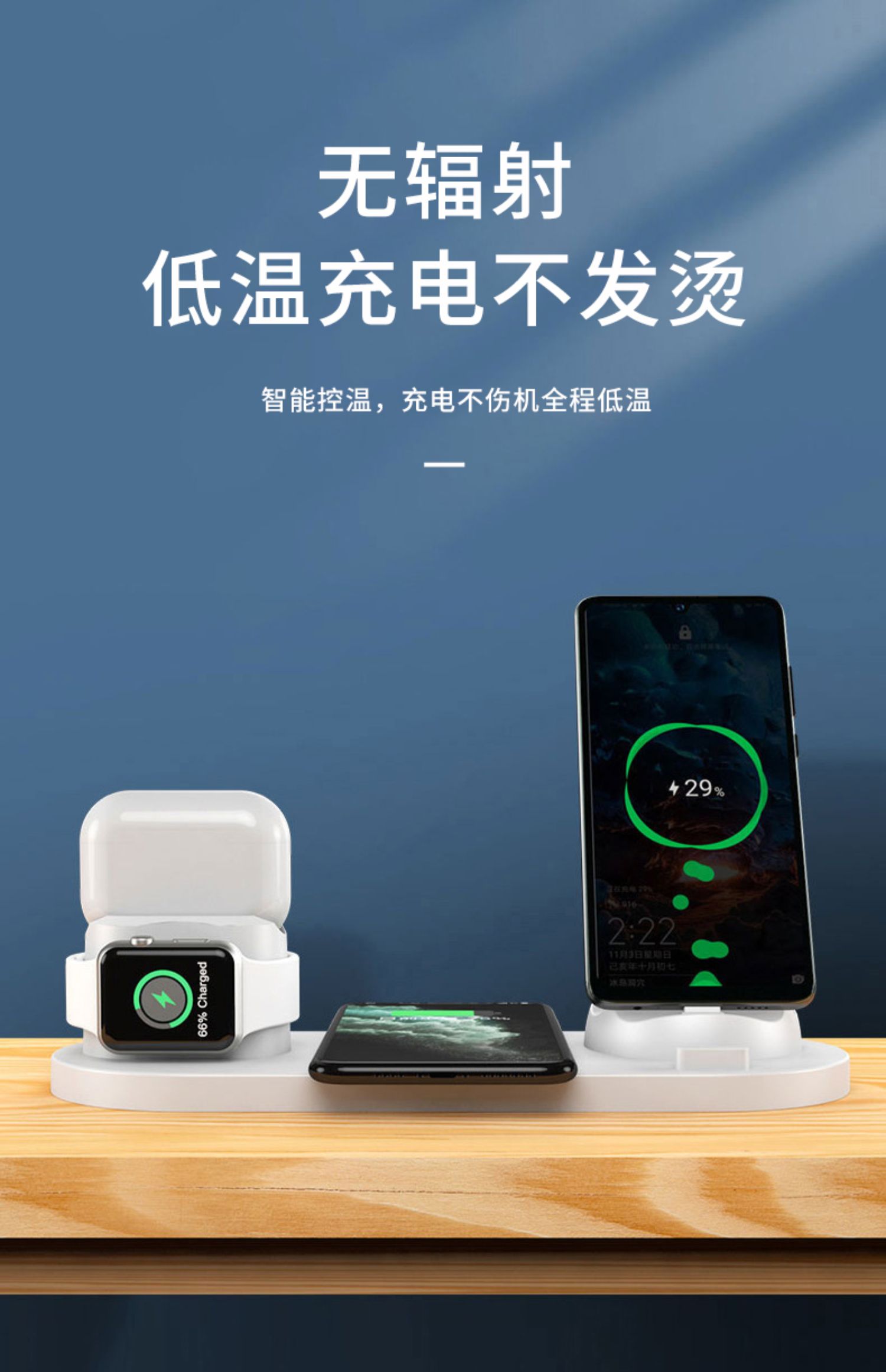 スマホワイアレス充電器iPhone時計apple多機能充電汎用Airpods三合一体イヤホンホルダーWT.WS 5六合一無線充電【白】