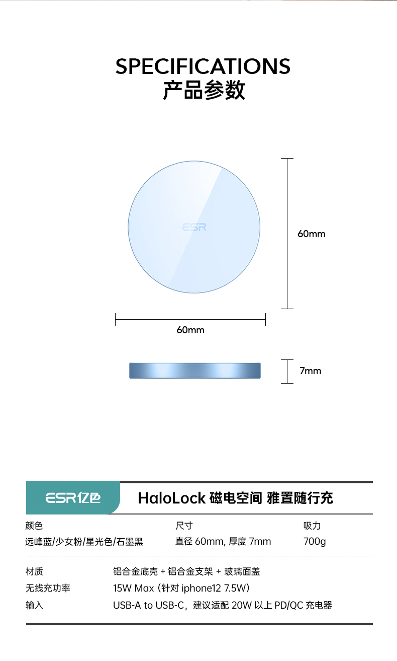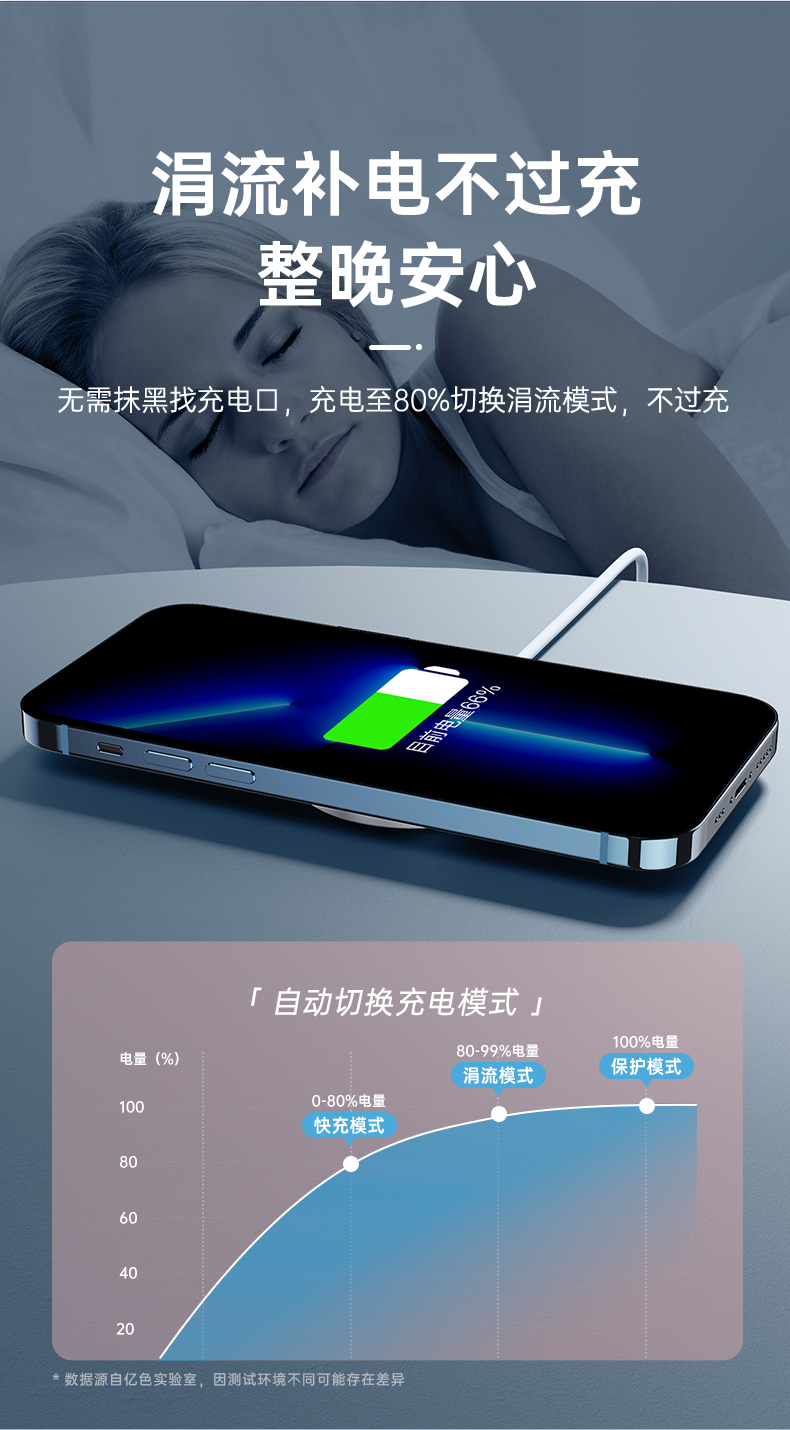 億色Appleワイヤレス充電器MagSafe磁気吸引15 Wワイヤレス充電iPhone 13/12 ProMaxスマホブルー【強磁気吸引低温充電付き】【20 W充電ヘッド付き】