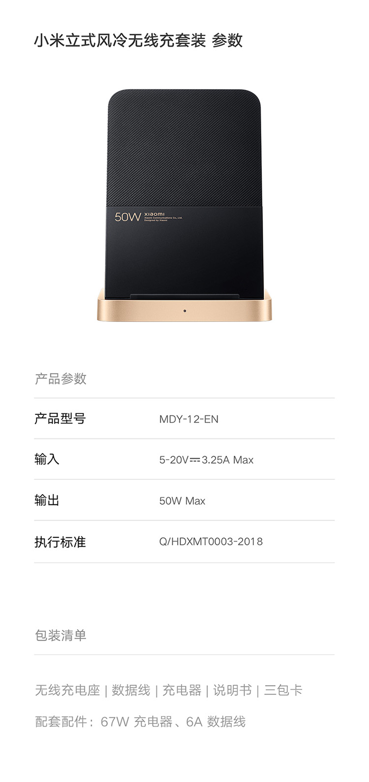 MI原装50 wワイヤレス充电器线充套(67 W充电器+6 Aデータ线を含む)通用充电适配MIスマホブラック【写真価格ブランドオファー】-