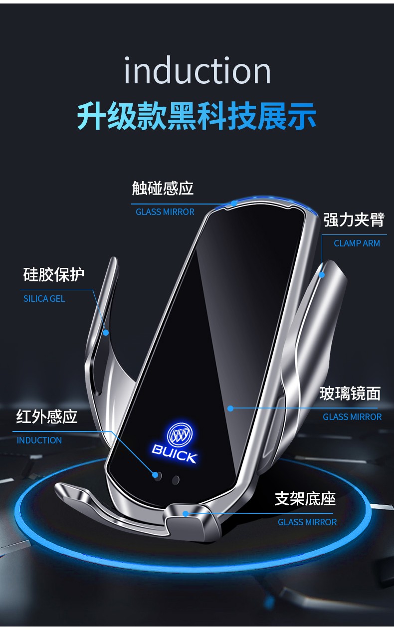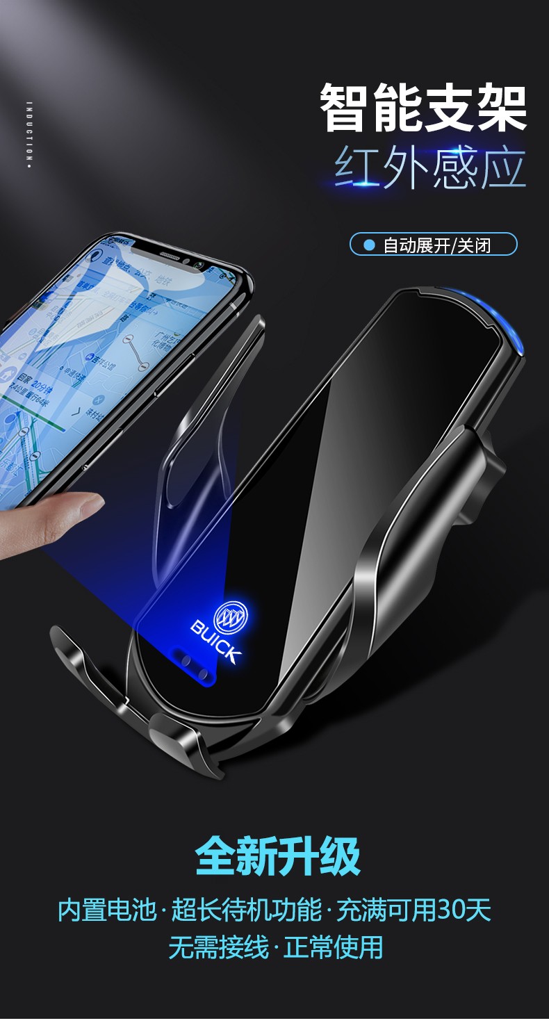 米将别克車載スマホ支柱ワイヤレス充電器GL8/昂科威/君越/英朗/君威/昂科旗/威朗/昂科拉車ナビゲーション支柱车用 炫酷黑色【智能升级】 凯越【所有车型】