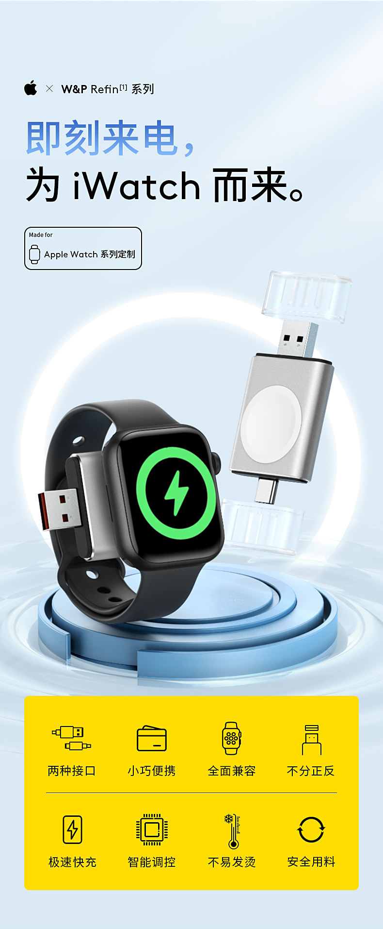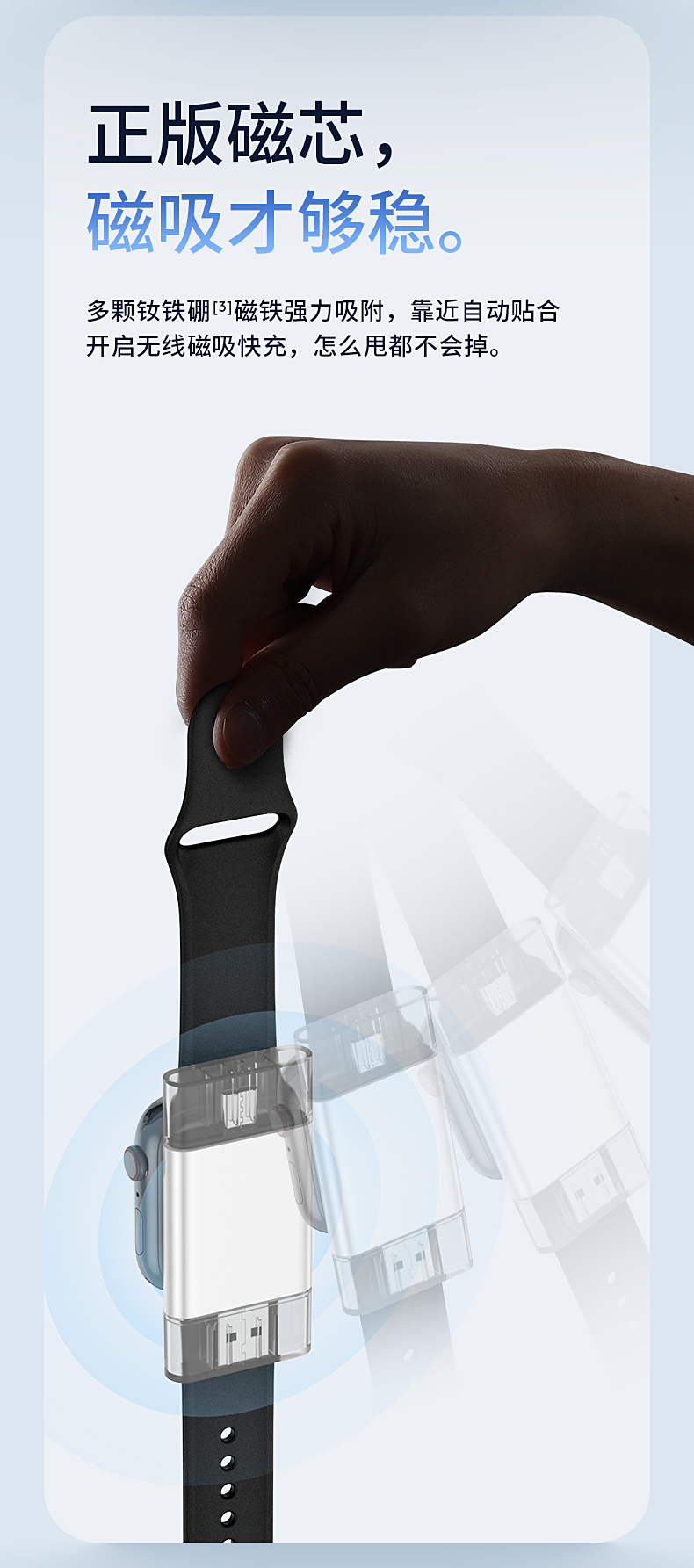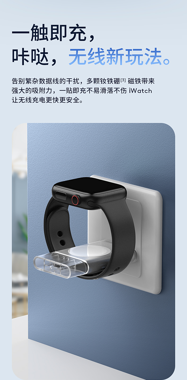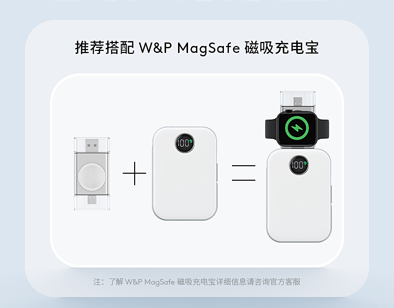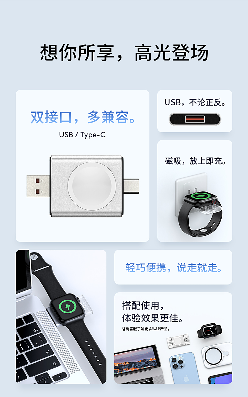 W&P 【美国】Apple手表充电器iwatch无线充电适用AppleWatch7/6/5/4/3/SE 【TYPE-C/USB二合一便携款】·冰霜银