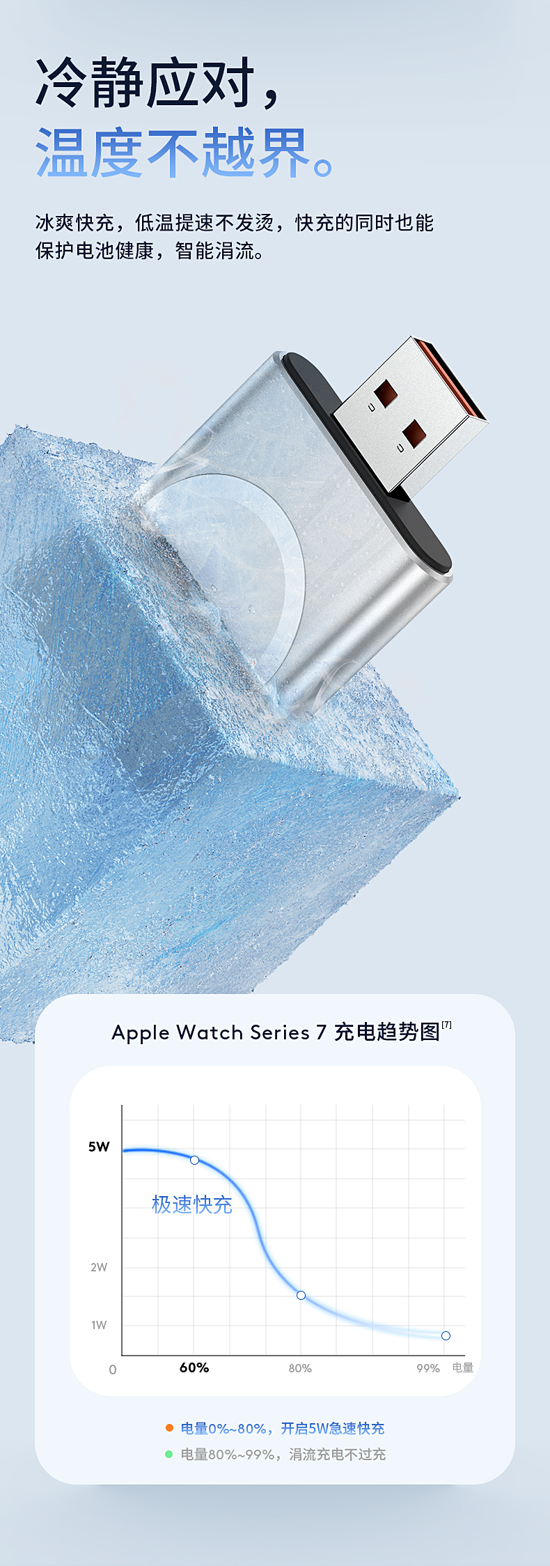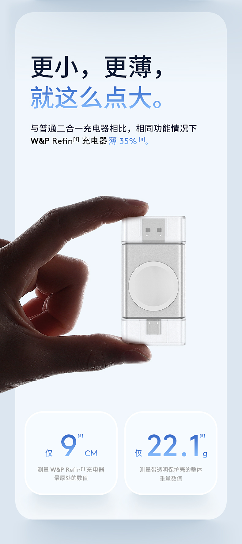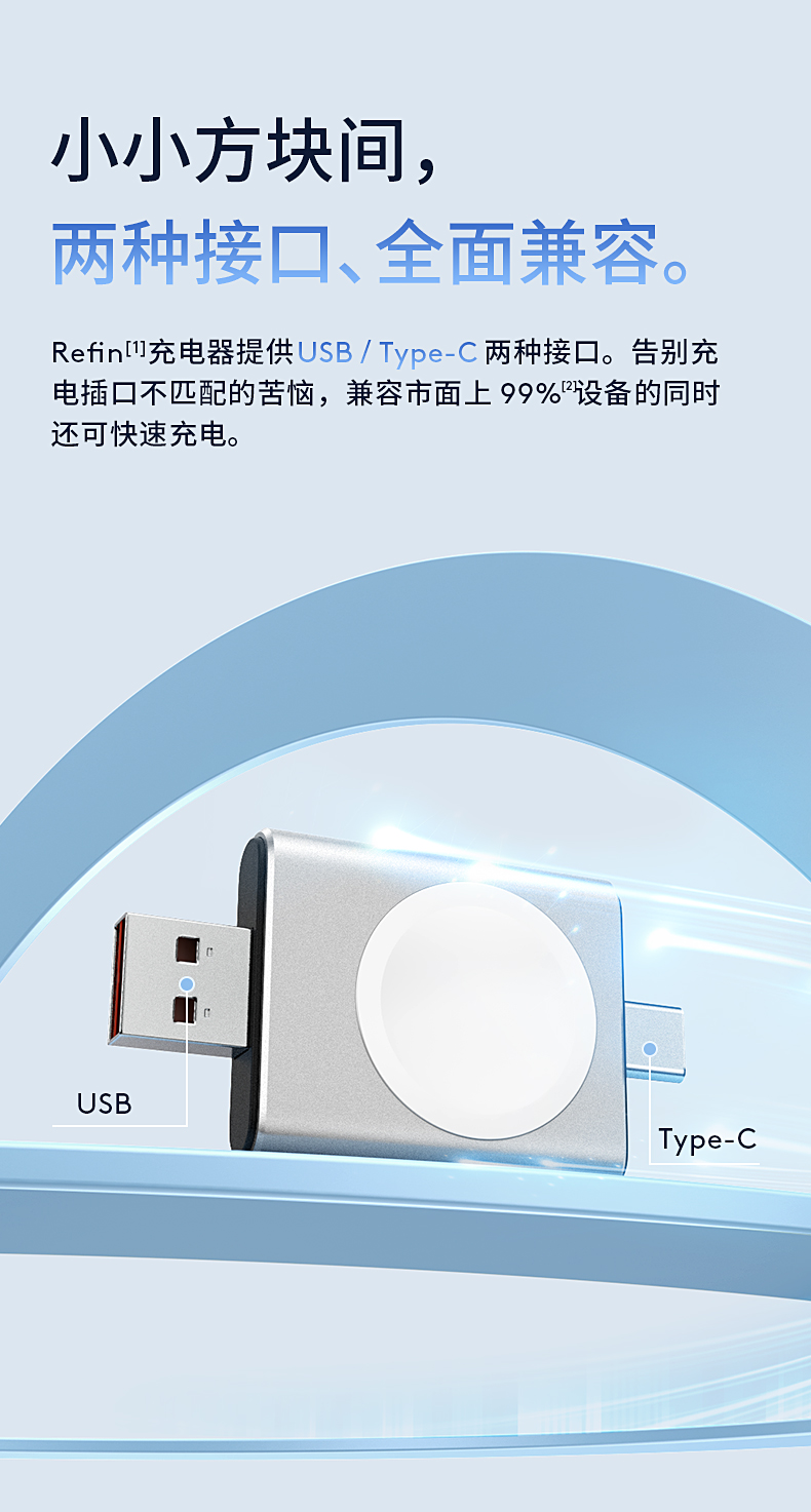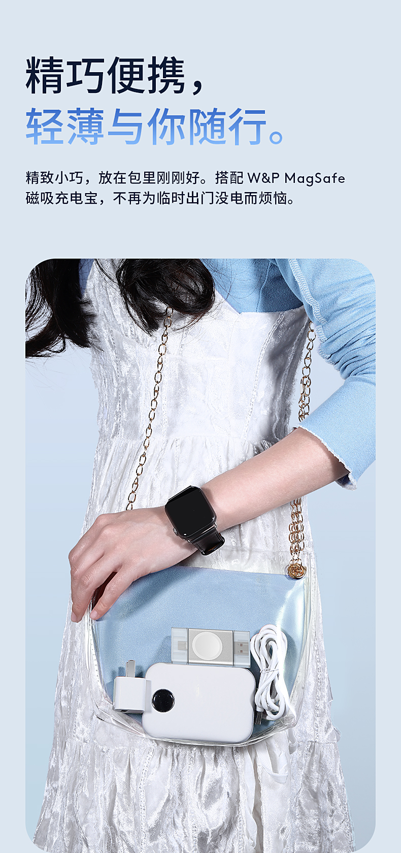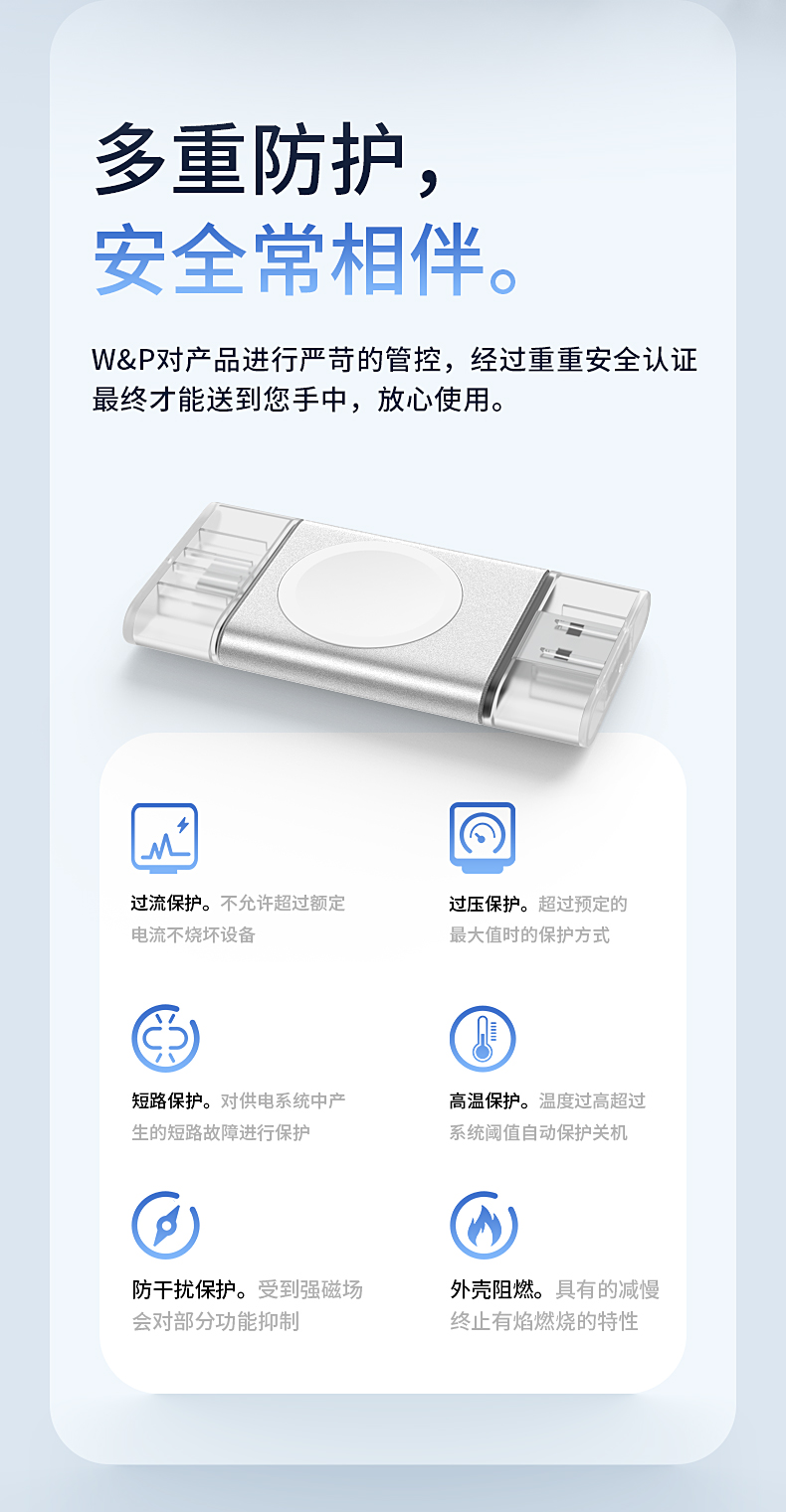 W&P 【美国】Apple手表充电器iwatch无线充电适用AppleWatch7/6/5/4/3/SE 【TYPE-C/USB二合一便携款】·冰霜银
