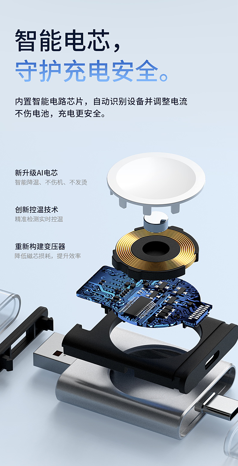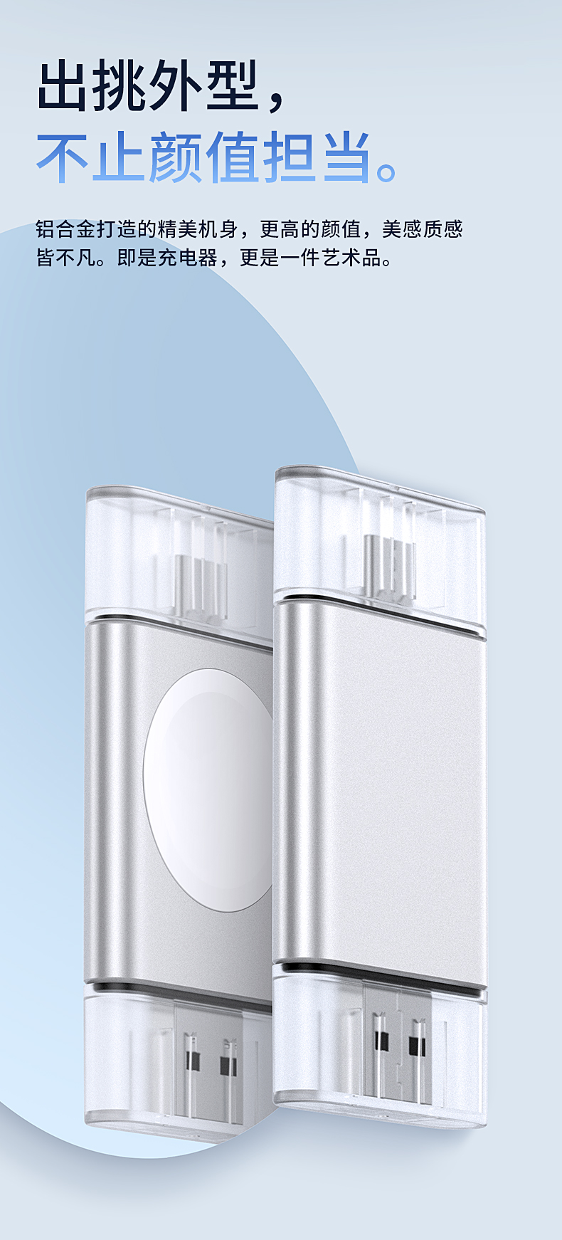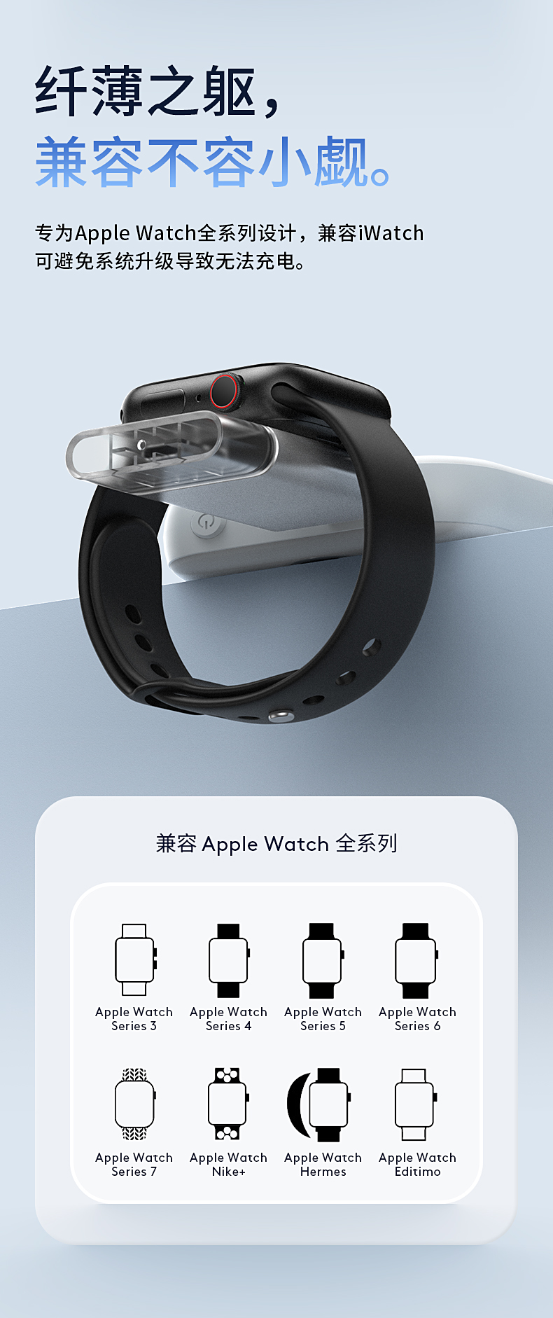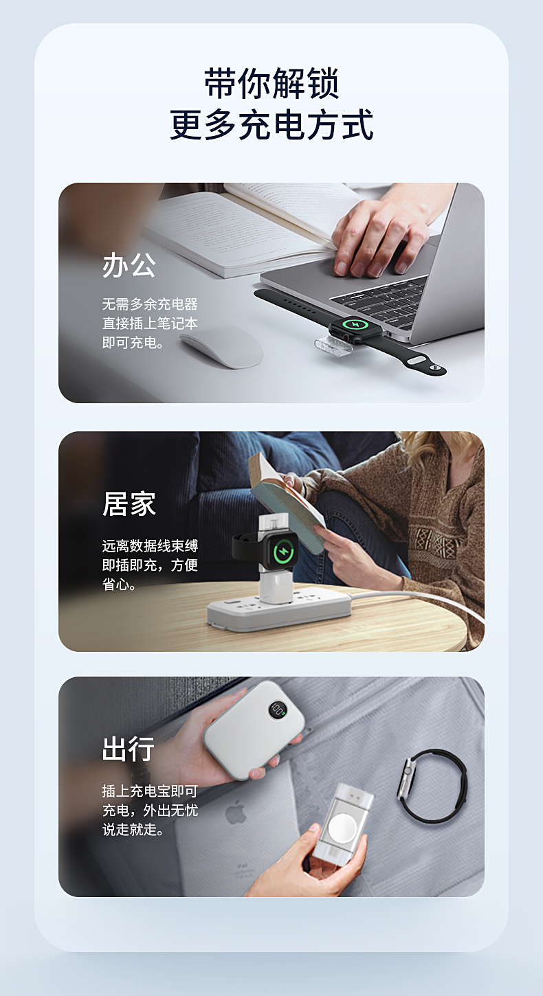 W&P 【美国】Apple手表充电器iwatch无线充电适用AppleWatch7/6/5/4/3/SE 【TYPE-C/USB二合一便携款】·冰霜银