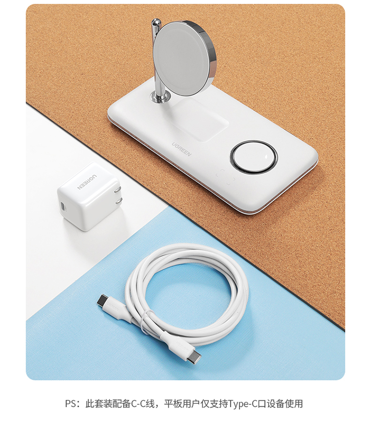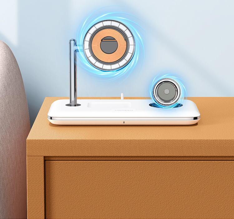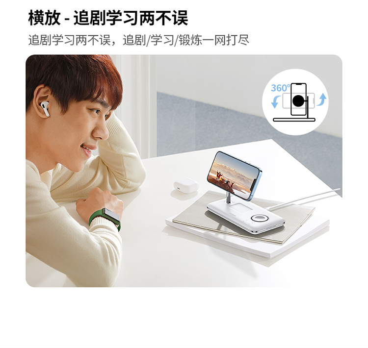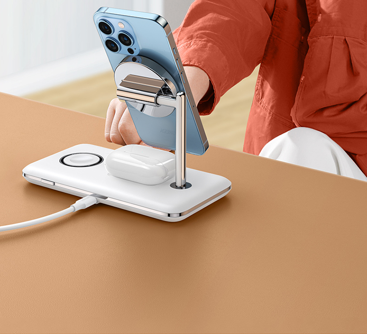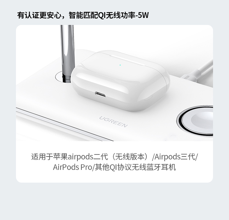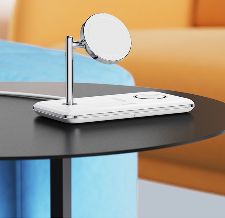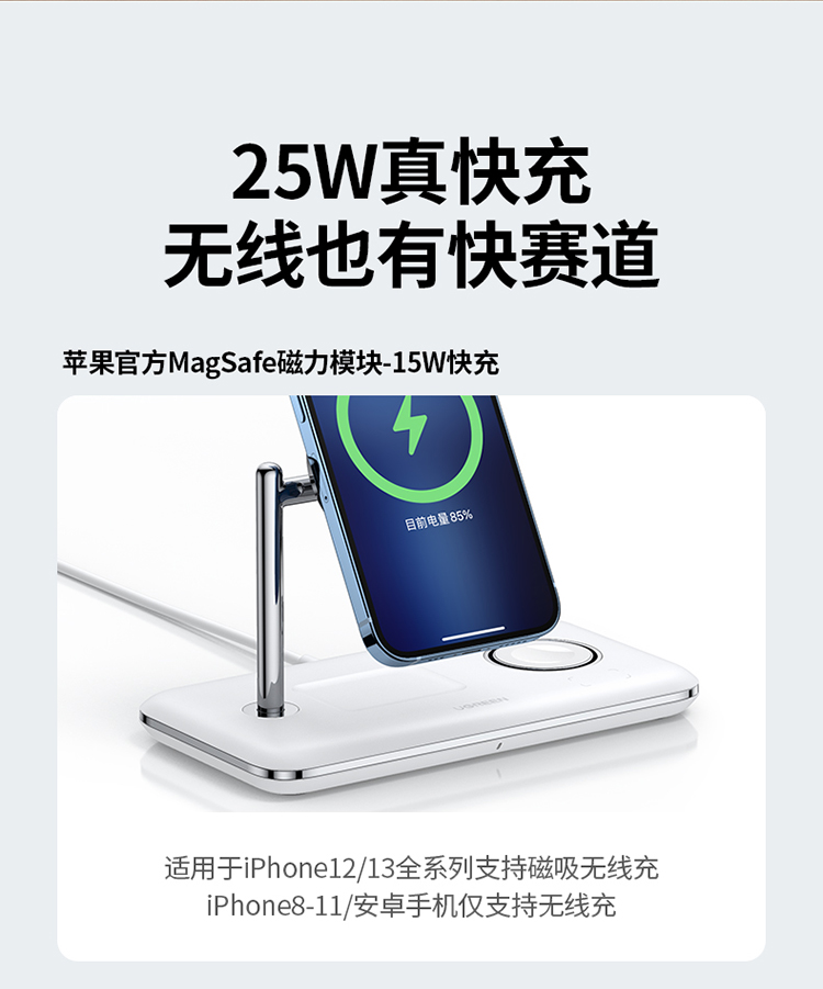 绿联 MFi认证 スマホ/手表/耳机三合一Magsafe无线充 15wApple磁気吸引支柱充電充电器 适用iPhone12/13Pro/iwatch7