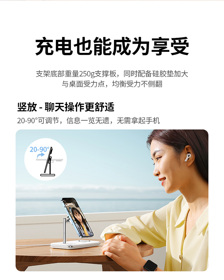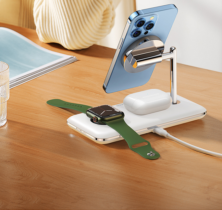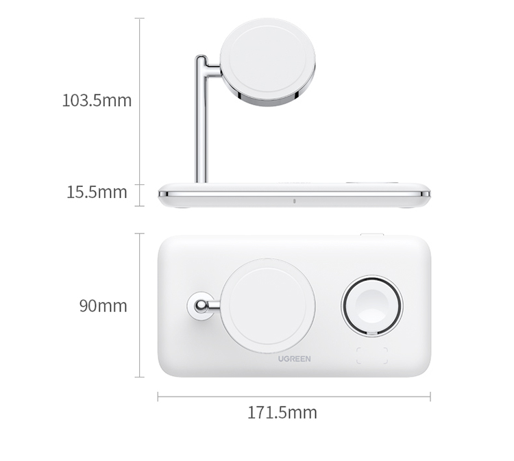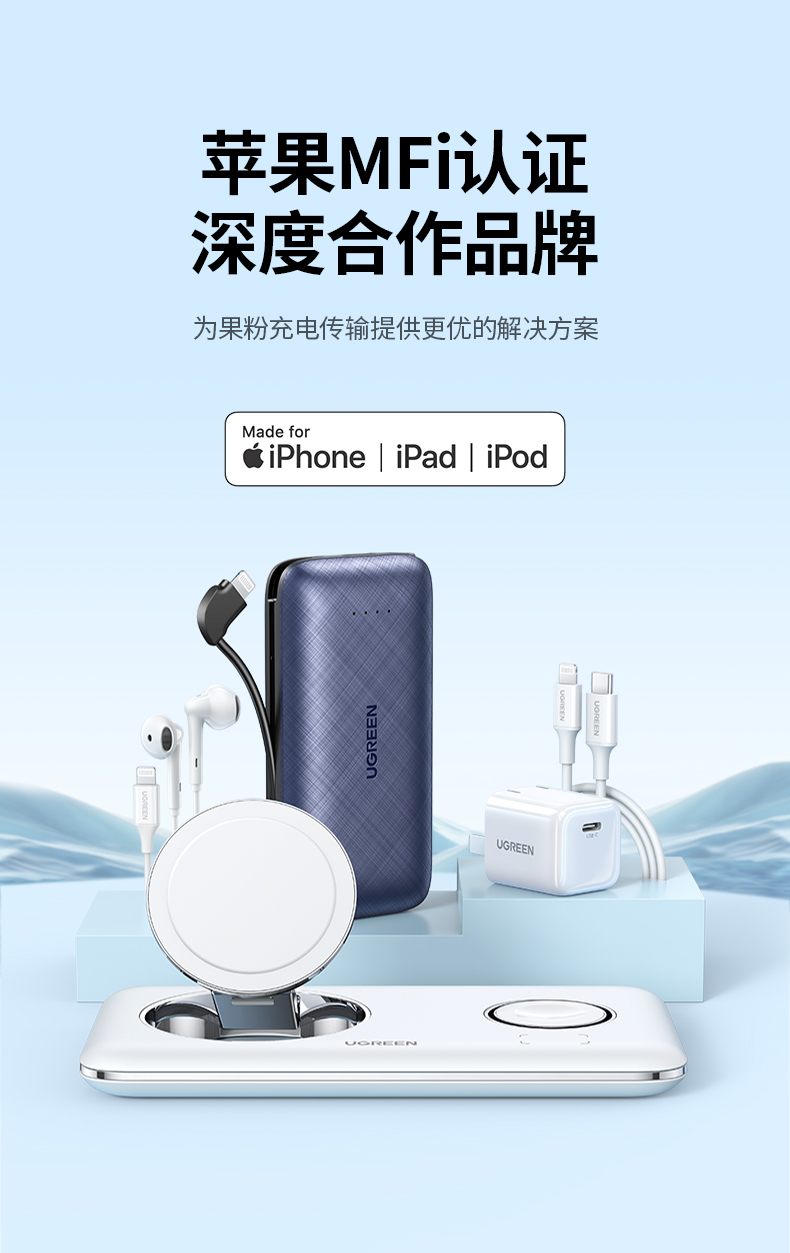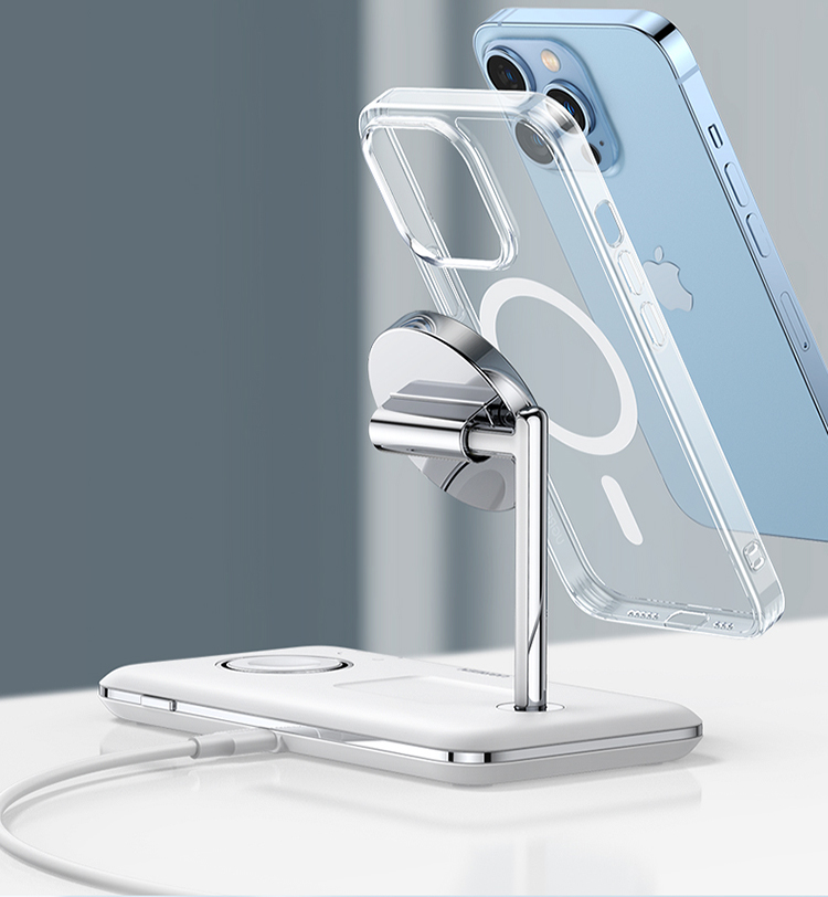 绿联 MFi认证 スマホ/手表/耳机三合一Magsafe无线充 15wApple磁気吸引支柱充電充电器 适用iPhone12/13Pro/iwatch7