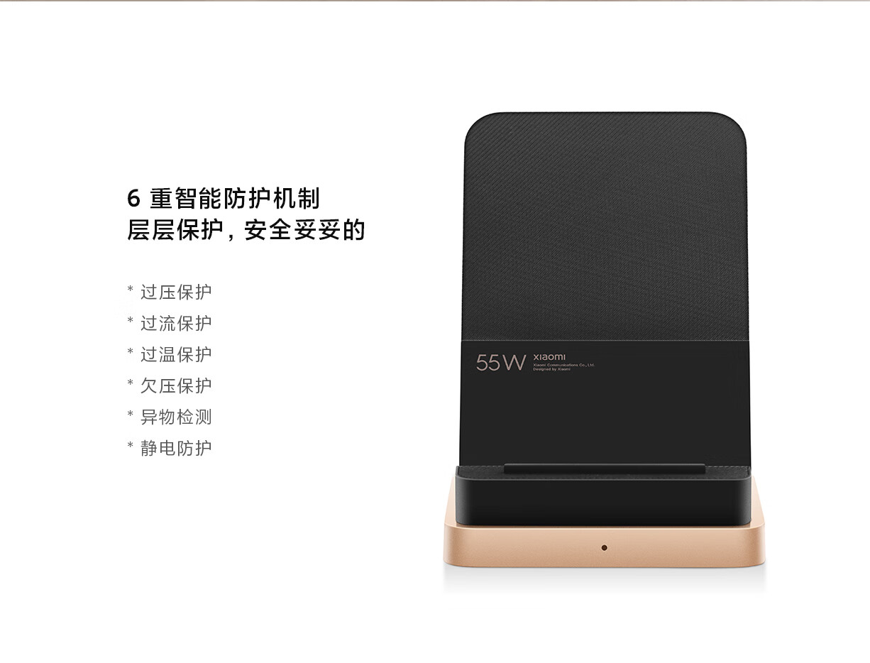 MI 原装55Wワイヤレス充電器 立式风冷无线充 无线闪充安全防护