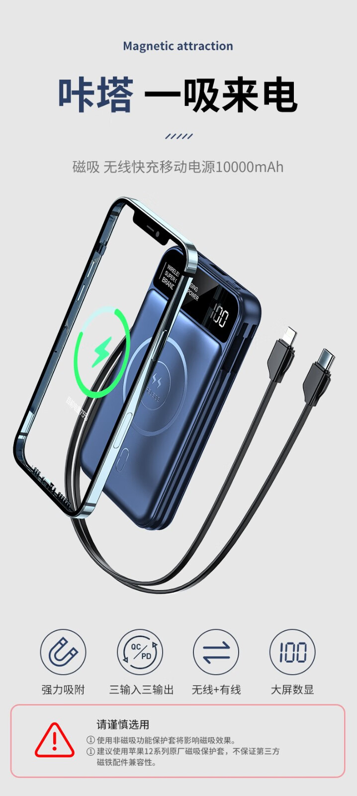 海瑞得年会纪念品定制客户圣诞节礼物送老师充电宝ワイヤレス充電器员工奖品公司伴手礼商务小礼品周年庆活动随手礼 磁気吸引款充電双线-黑色【图片 价格 品牌 报价】-