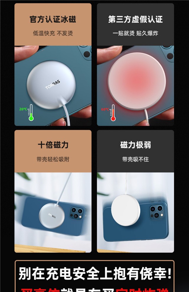 トゥーラスアプリワイヤレス充電器MagSafe磁気吸引充電iPhone 12 Pro Max/Mini sumaホ1.5 m【低温不傷機】magsafe+磁気吸引パッチ