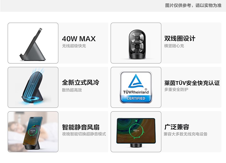 | 商品名称 | HUAWEIワイヤレズ充電器40 Wスイスフィーパ充電50 W立式シートチャージ台27 W 15 WイヤホンフラットパネルスマホーP 40 pro/Mate 30 40 Wスポーツパ充電HUAWEI立式無線充電器優雅黒標準装備 |