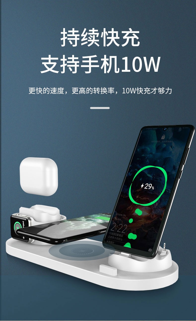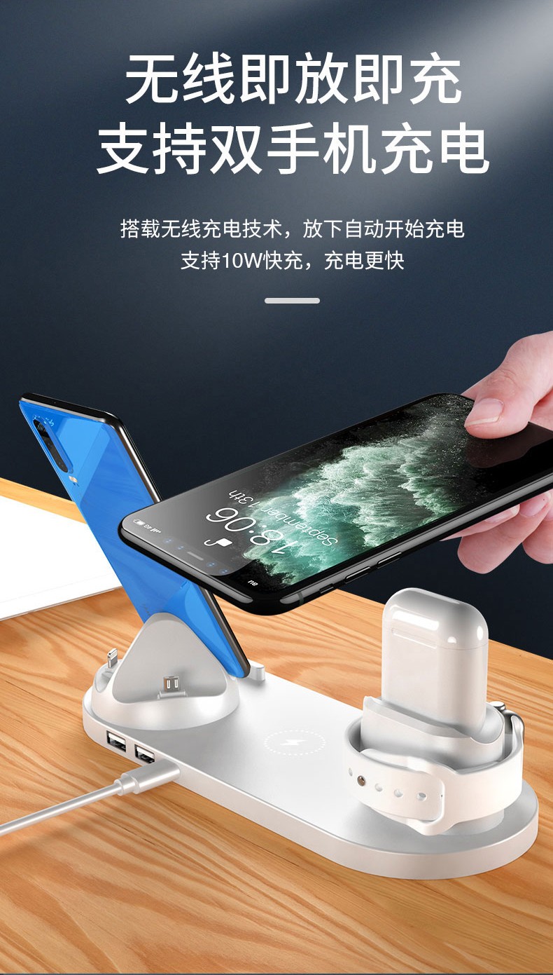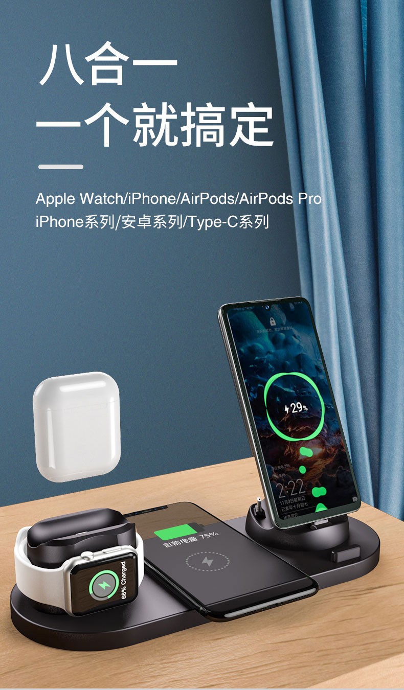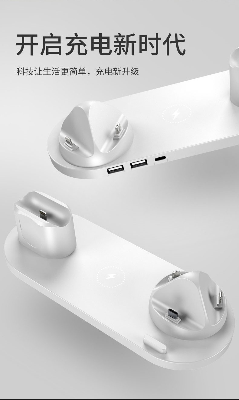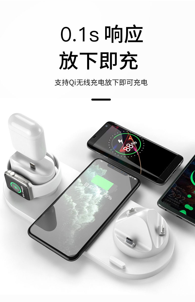 暢聯佳ワイヤレス充電器Apple 12多機能八合一充電器腕時計ヘッドフォンスタンド式無線充電パネル充電HUAWEIMIPhone 11サイム八合一ワイヤ充電器【白】+5 A充電ヘッド